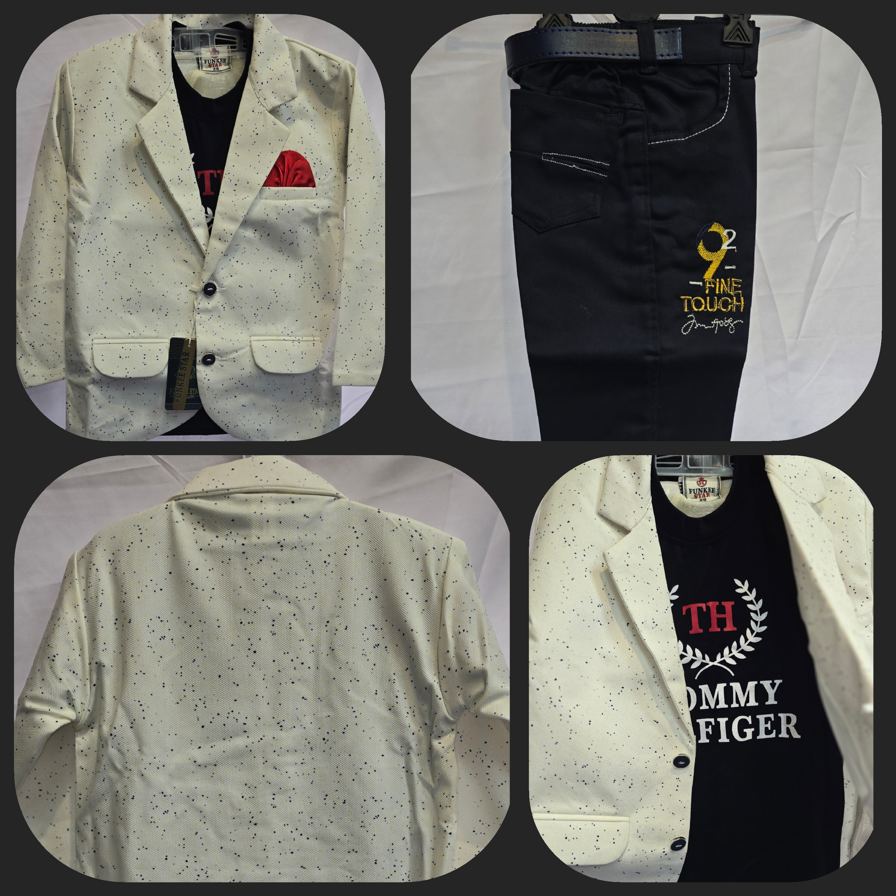 White bute Blazer ,t-shirt hf,cotton jeans nevy blue